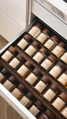 جا ادویه چرخشی ۱۸ خانه (گردان) | شیشه ضخیم، درب نمک‌پاش و استند مشکی