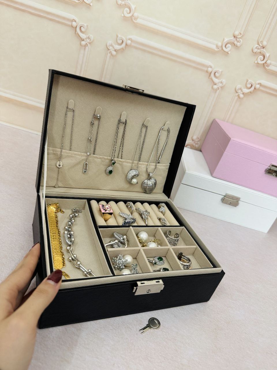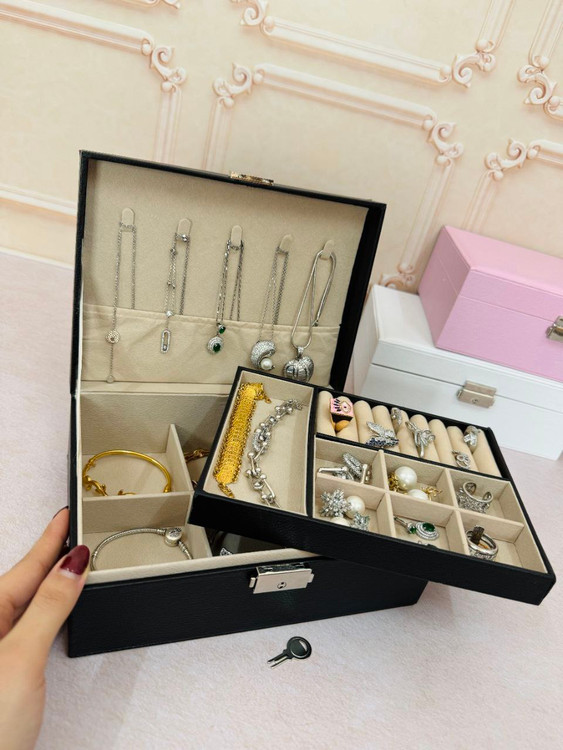 با ابعاد ۱۷×۲۳×۹ سانتی متر دارای جای اختصاصی برای گردنبند، دستبند، انواع گوشواره و ساعت است.