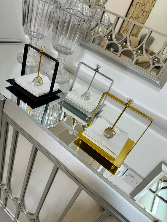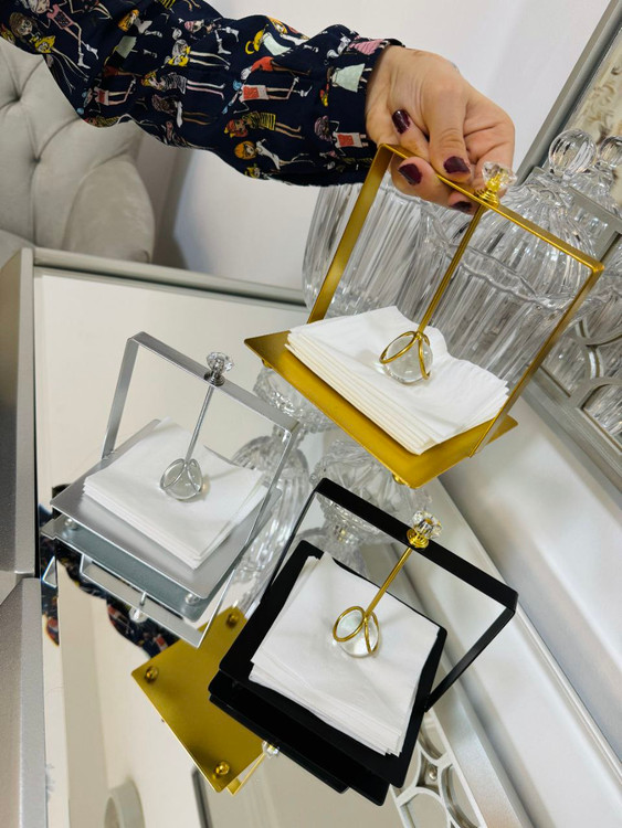 یه دکوری خوشگل و کاربردی برای میز پذیرایی 😍 استند جادستمال وارداتی، با طراحی خاص و شیک ✨ تو سه رنگ جذاب: مشکی، طلایی و سیلور 🖤💛🤍 کوچیکه اما حسابی میزت رو خاص میکنه 💫 ابعادش عکس اخر