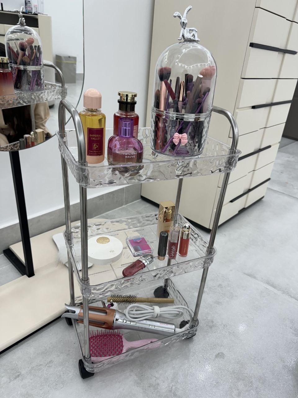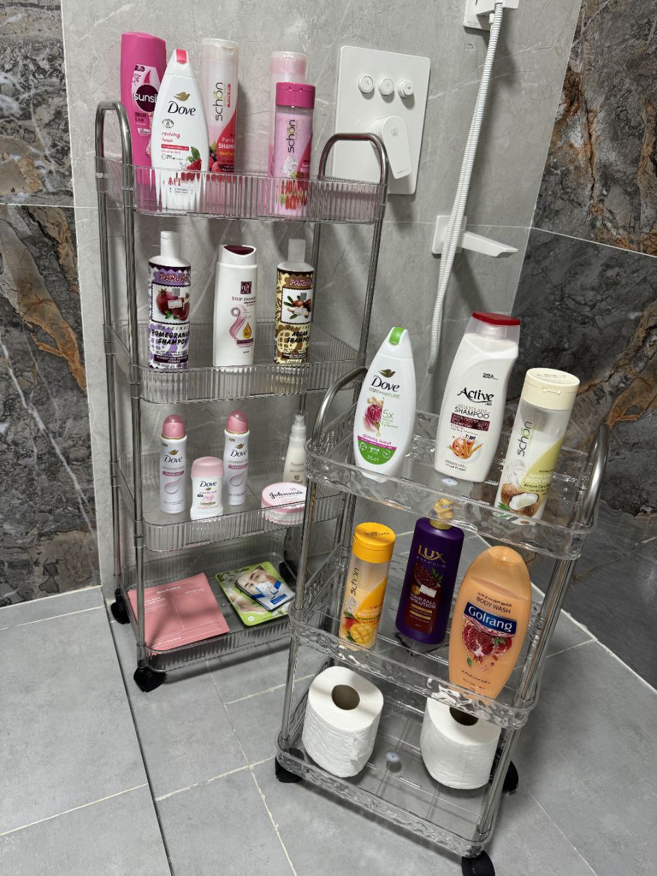 با خیال راحت شامپو، نرمکننده، کرم، حوله و هرچی دمدستی نیاز داری رو بچین روش… همهچیز تمیز، مرتب و خوشگل کنار هم 👌✨