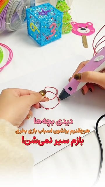 قلم ۳D با قابلیت کنترل سرعت کار با فیلامنت PLA و ABS. طول قلم ۱۹ سانتیمتر و دارای فیلامنت چند رنگ، دفترچه راهنما، کابل برق USB و نگهدارنده.